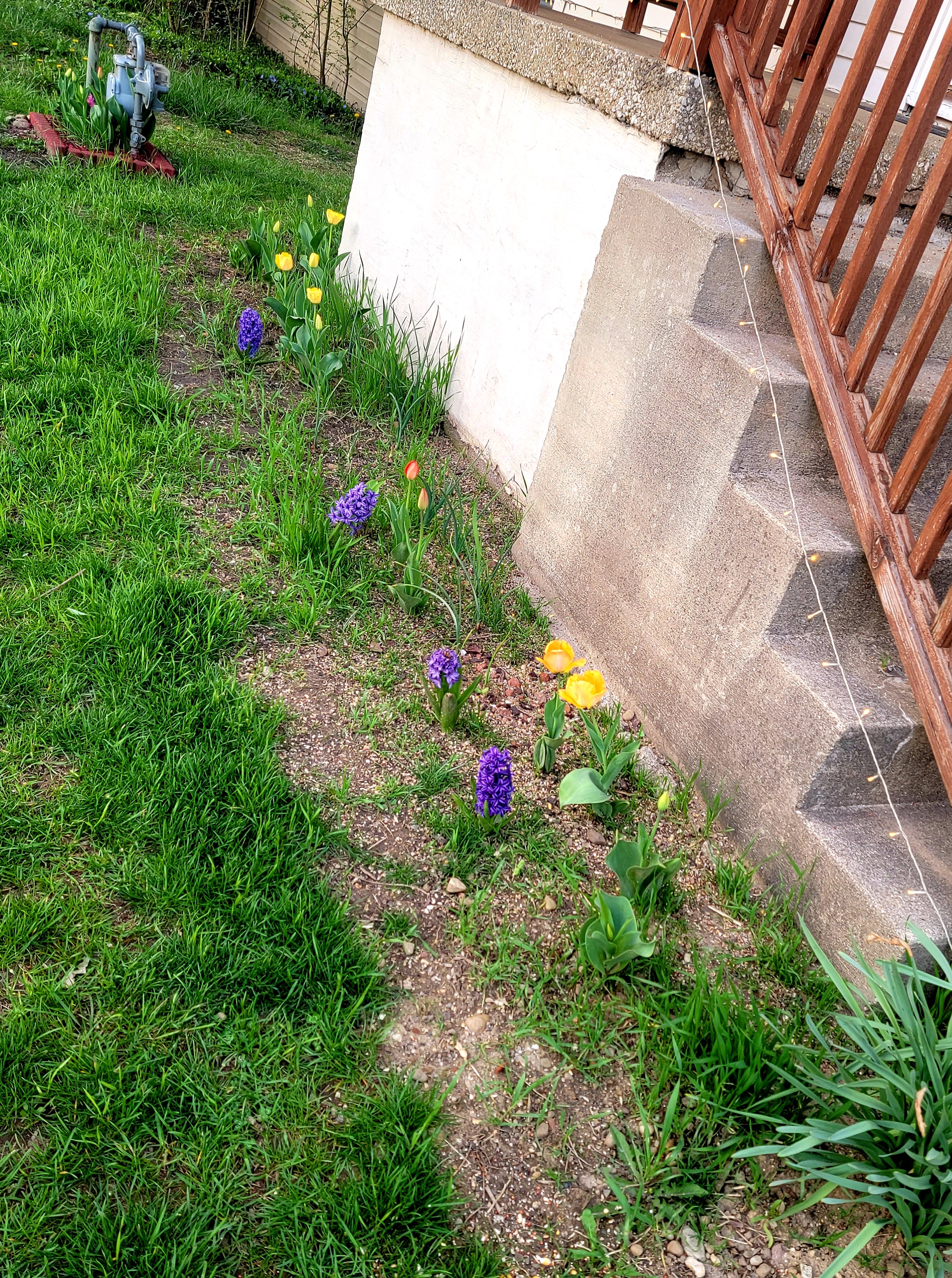 The hyacynth are fragrant and perfuming the whole front of our property, and our tulips are bright pops of color in our front garden beds.