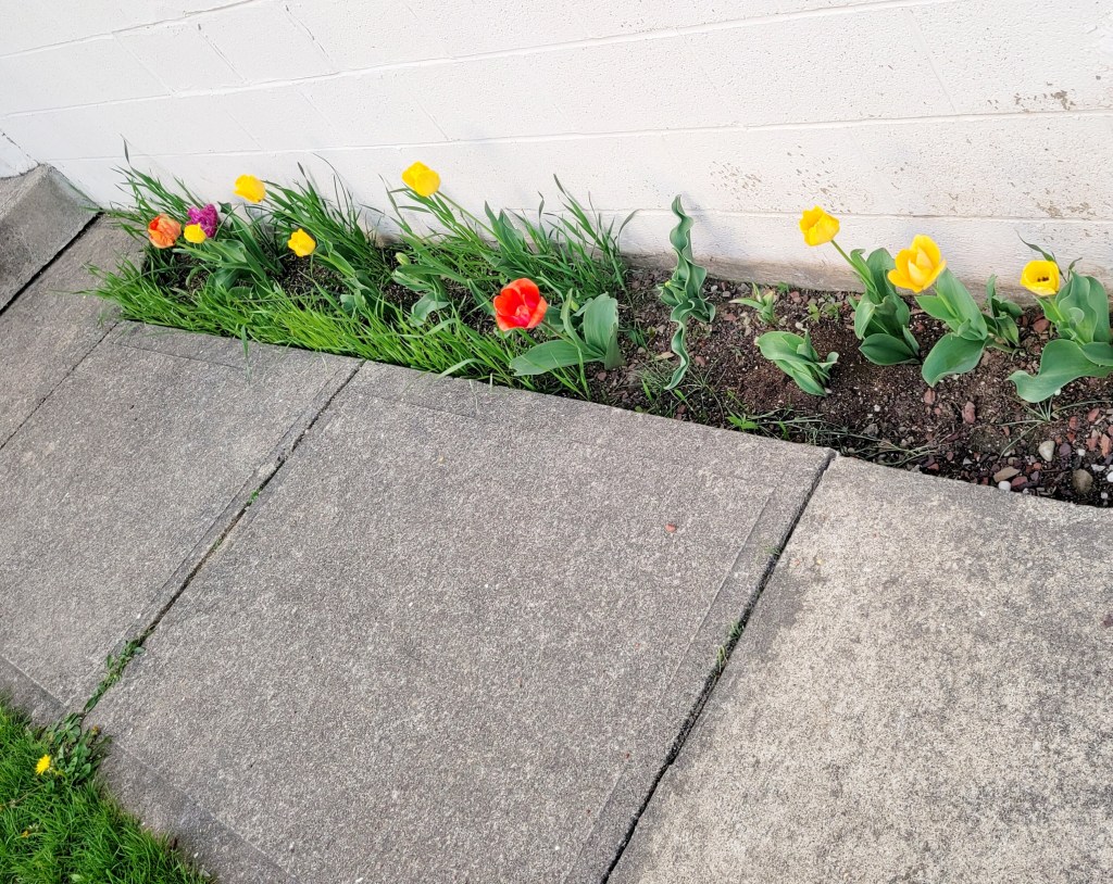 This is the first year that we have tulips and other bulb flowers, and an agreeable property manager who is mostly indifferent to our homesteading apirations. This is our first growing season here at this property.